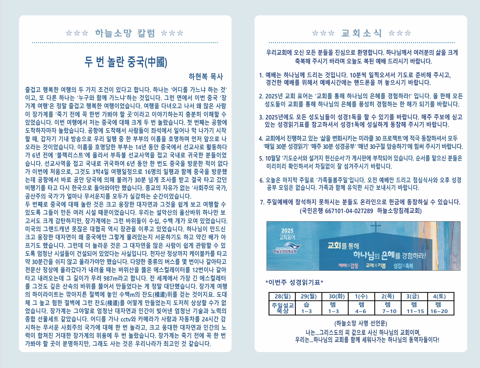 2025년 9월 28일 교회소식
