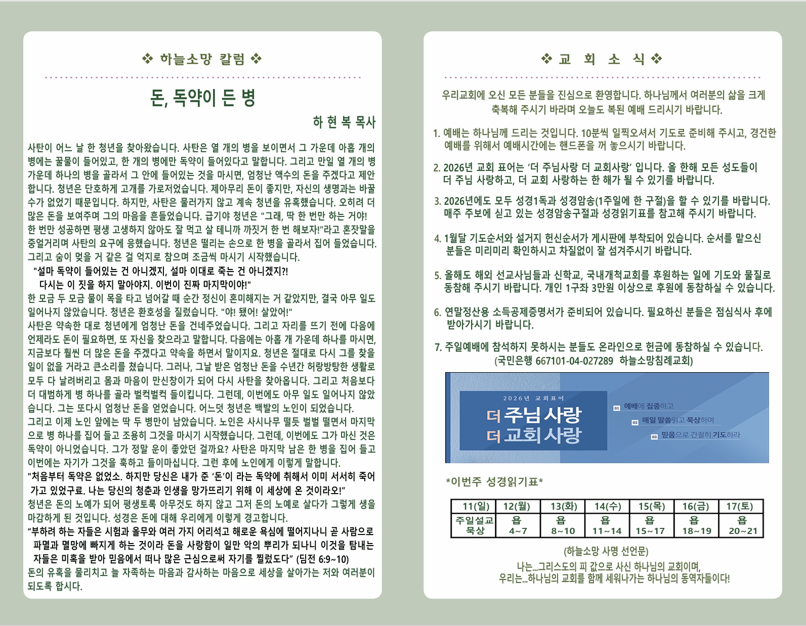 2026년 1월 11일 교회소식
