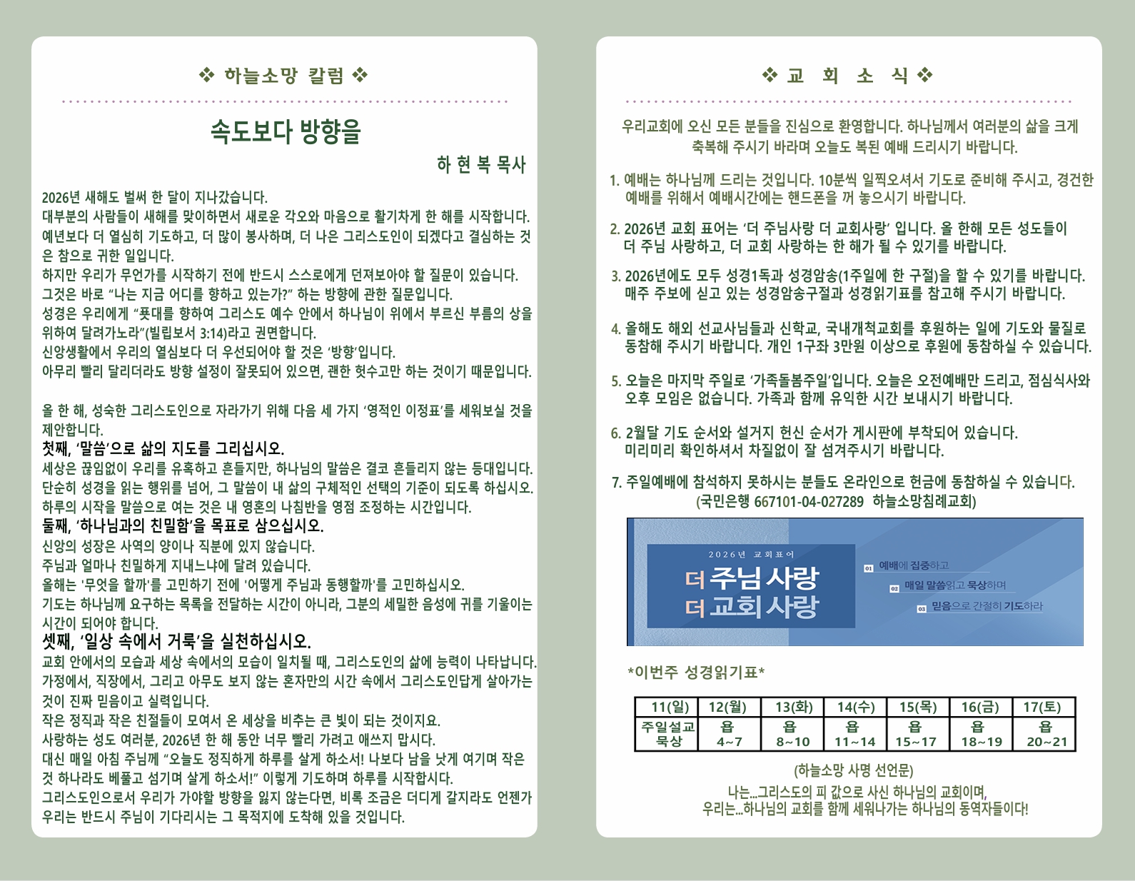 2026년 1월 25일 교회소식