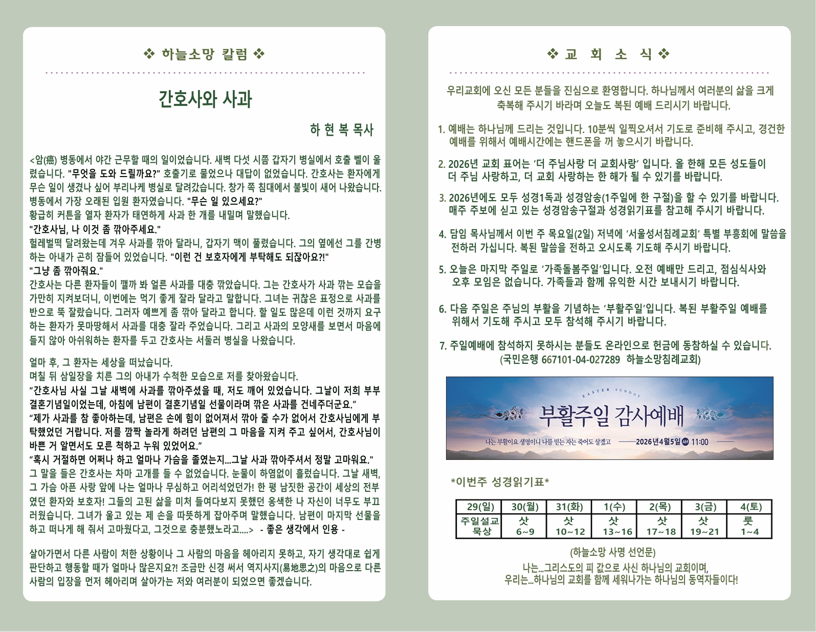 2026년 3월 29일 교회소식