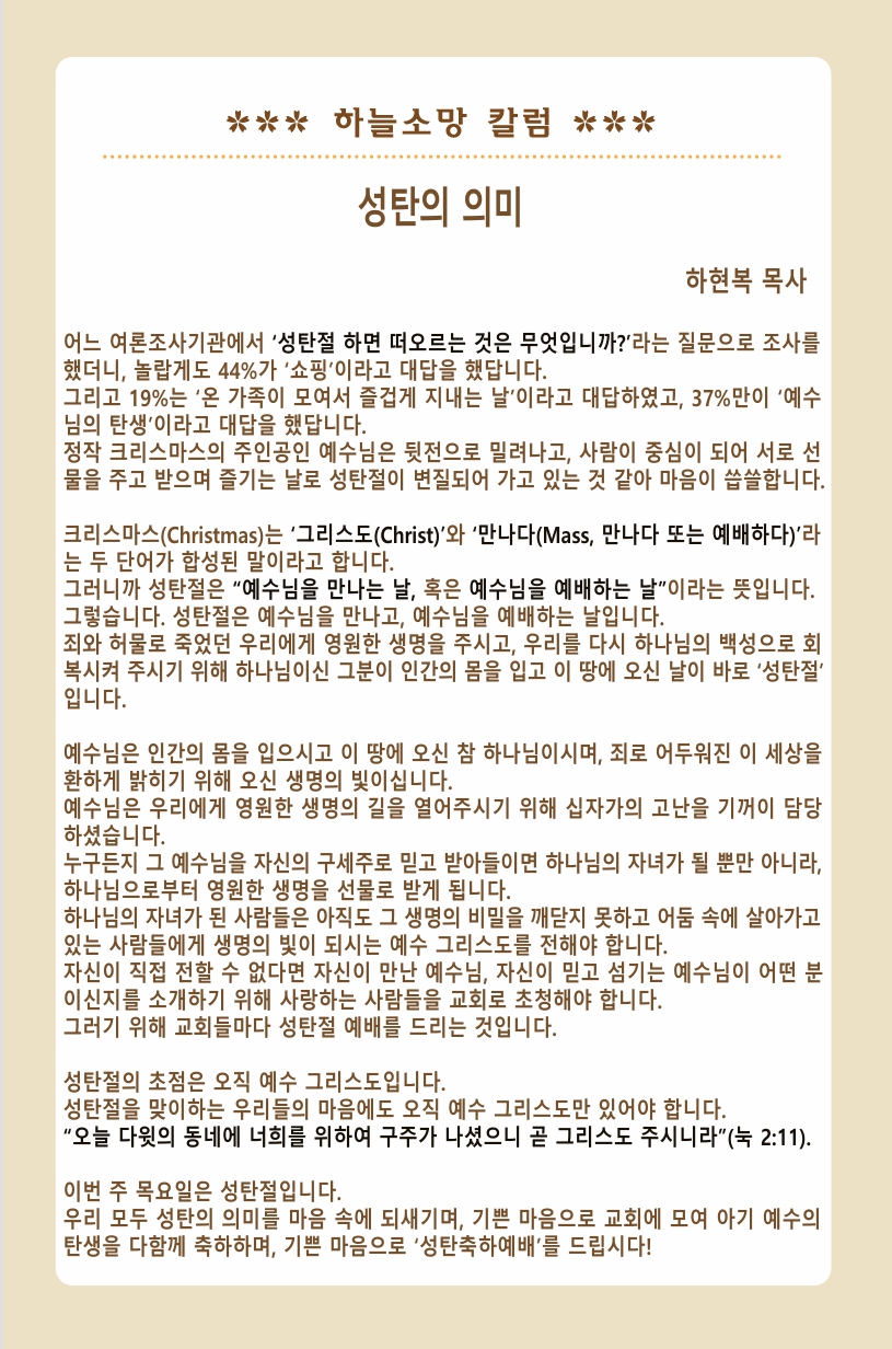 | 다음글 | 신앙 생활의 4대 의무 | 운영자 | 2025.12.12 | 0 | 204 |